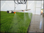 Sistema de irrigação por barra com programação individual de cada barra, Sistema por deslocamento linear (barra) modelo IB 6000-C com funcionamento interno ou externo, barra de movimentação através de deslizamento em trilhos longitudinais com motorização e automação através de programador horário.